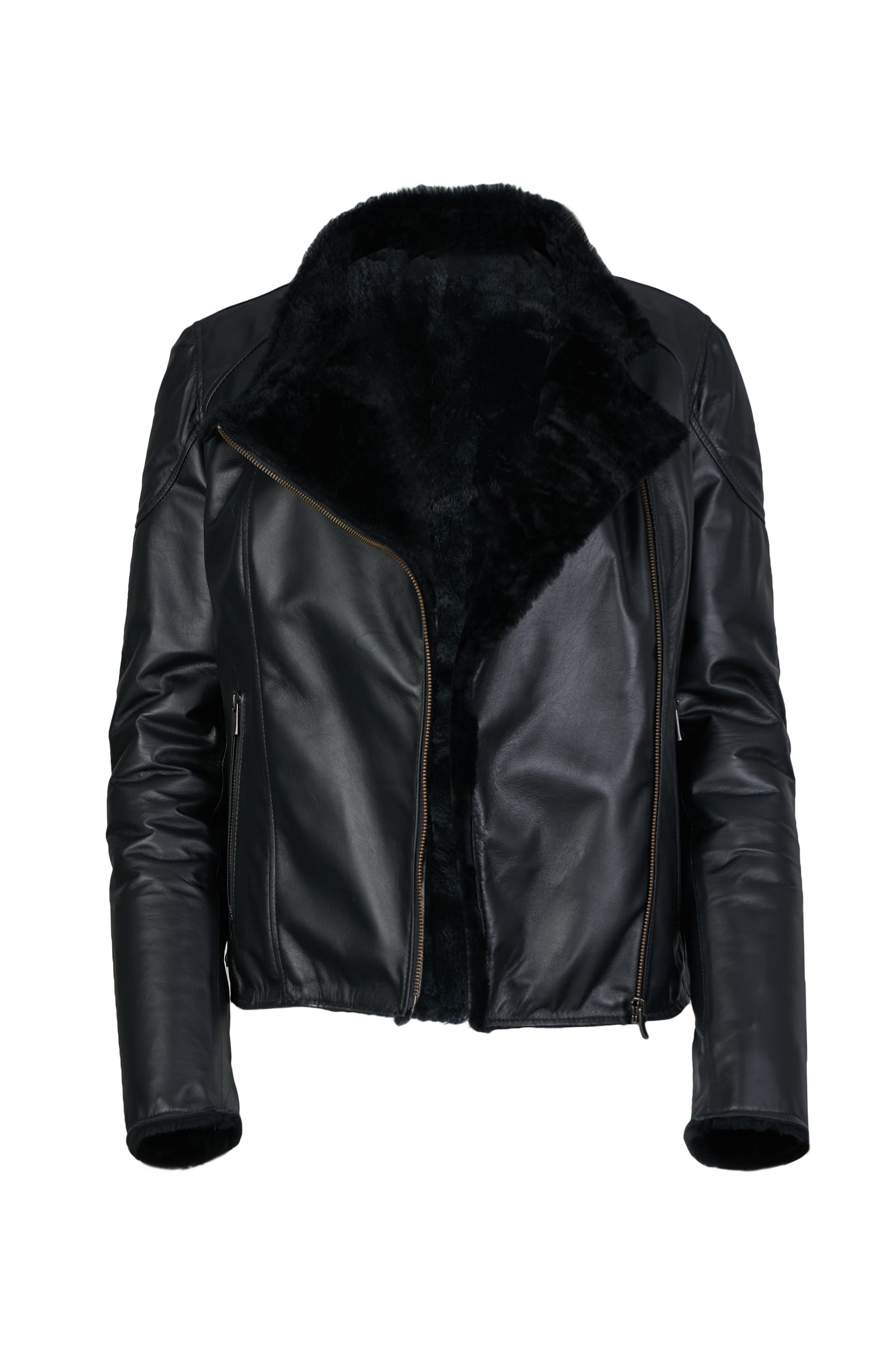 SUNDAY - Women's Biker Leather Jacket with Sheepskin Insulation