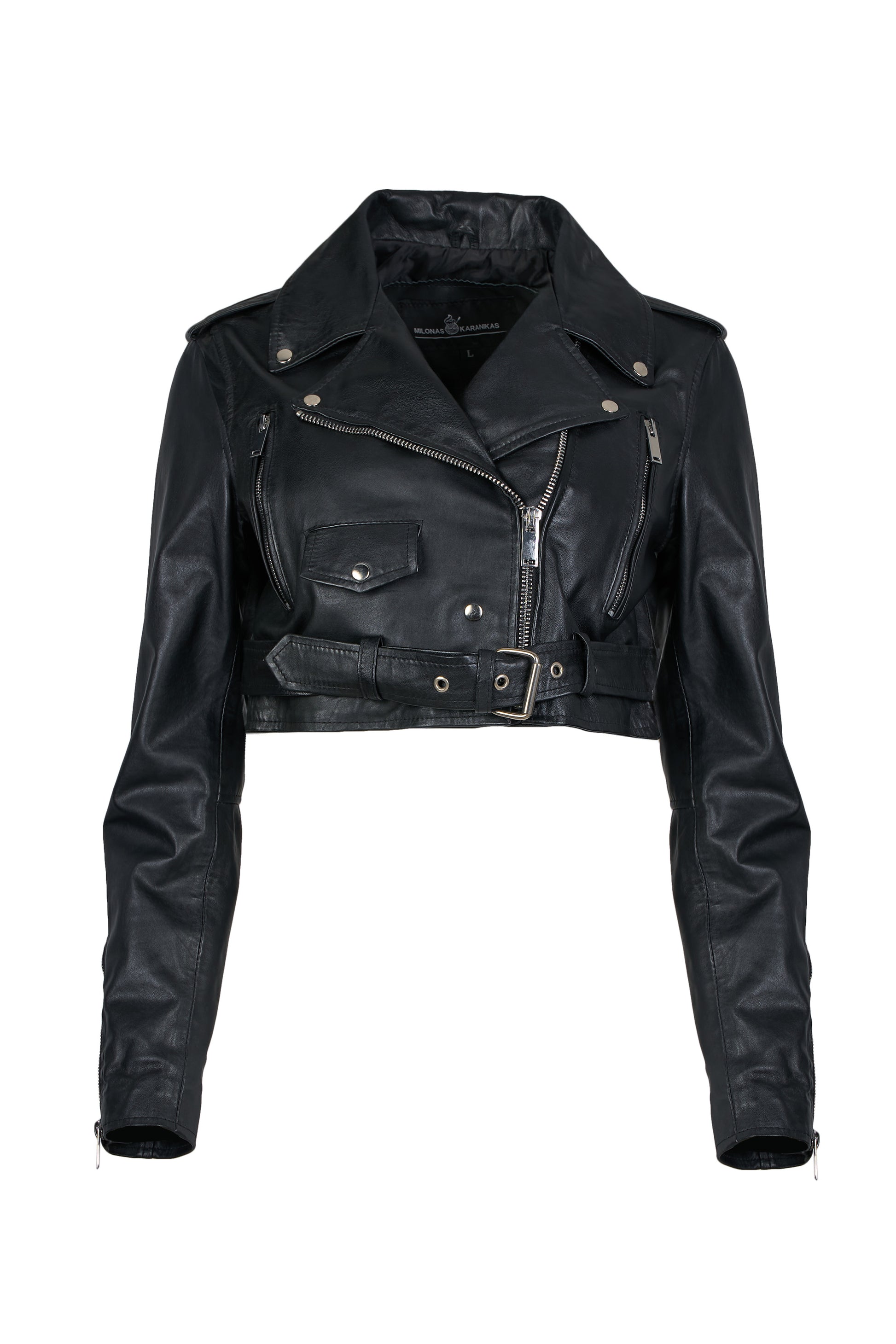 Women's Cropped Biker Leather Jacket crafted from soft and durable nappa lambskin, offering a perfect balance of edgy style and modern elegance. Designed for effortless layering and everyday wear.