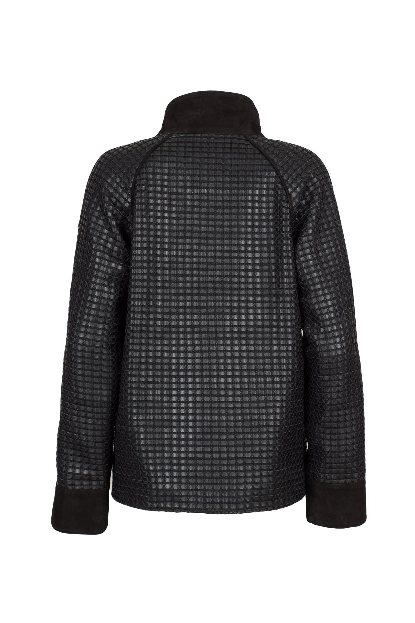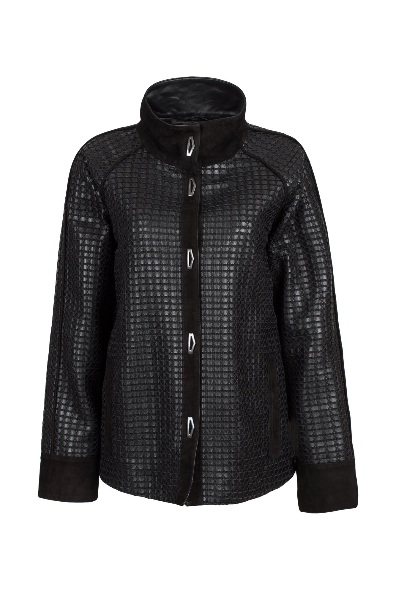 Women's checkered Jacket combining suede with black nappa lamb leather.
